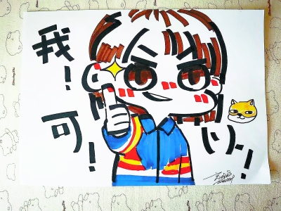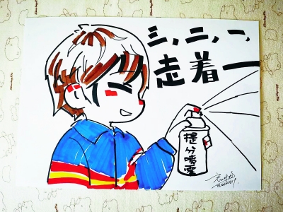 高二時,這一傳統(tǒng)得以延續(xù)。今年,從給學(xué)長們吶喊加油,輪到了為自己和同學(xué)們鼓勁打氣。在漫畫的創(chuàng)作風(fēng)格上,張亦萱也做了調(diào)整?!爸皭坌牡脑貢嘁恍?,今年會更活潑一些,希望能讓人看了更輕松?!睆堃噍嬲f,自己從小學(xué)開始學(xué)美術(shù),對她來說,畫畫不難,難的是創(chuàng)意和構(gòu)思。最開始畫的時候,想法很多,從網(wǎng)上獲得了不少靈感;后來,為了不跟別人重復(fù),她開始翻各種表情包,力求好玩兒有趣。