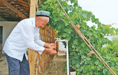 如今,伊米提老人家廚房、衛(wèi)生間和院子里各有一個水龍頭,擰開就能喝到甘甜的水。“這是慕士塔格峰的雪水!水甜,生活更甜!”伊米提從菜園里摘了西紅柿,在水龍頭下沖了沖,吃到嘴里,甜滋滋的。(記者 李亞楠)