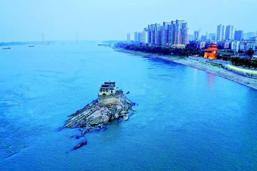 位于長江湖北鄂州城區(qū)段小東門外長江中的觀音閣,被稱為“萬里長江第一閣”