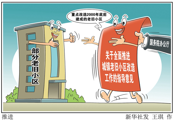 新華社北京7月20日電 國(guó)務(wù)院辦公廳日前印發(fā)《關(guān)于全面推進(jìn)城鎮(zhèn)老舊小區(qū)改造工作的指導(dǎo)意見》(以下簡(jiǎn)稱《意見》),要求按照黨中央、國(guó)務(wù)院決策部署,全面推進(jìn)城鎮(zhèn)老舊小區(qū)改造工作,滿足人民群眾美好生活需要,推動(dòng)惠民生擴(kuò)內(nèi)需,推進(jìn)城市更新和開發(fā)建設(shè)方式轉(zhuǎn)型,促進(jìn)經(jīng)濟(jì)高質(zhì)量發(fā)展。