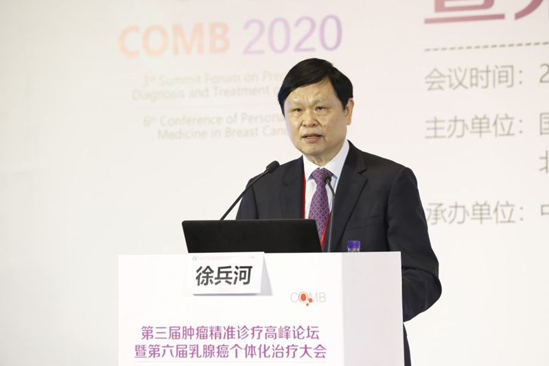 國家腫瘤質(zhì)控中心乳腺癌專家委員會主任委員、中國醫(yī)學(xué)科學(xué)院腫瘤醫(yī)院徐兵河教授在第六屆乳腺癌個(gè)體化治療大會上發(fā)言。圖片由受訪者提供