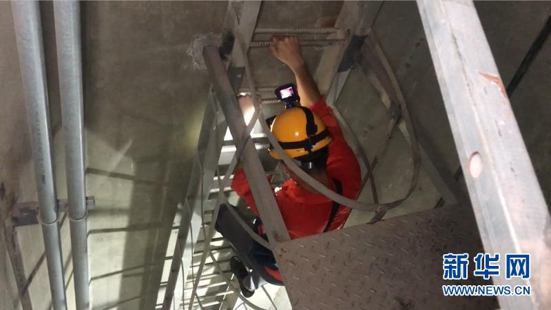 8月12日凌晨兩點,贛州工務段贛州高鐵路橋工區(qū)工長寧建平攀登檢查梯,檢查橋塔斜拉索上部鋼錨箱內設備狀態(tài)。南昌鐵路局供圖