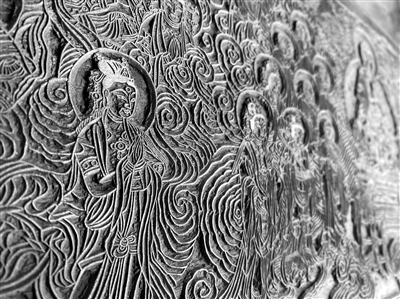 隨著白富鋼的五指輕盈地在古老的木板上游走,一塊木質(zhì)經(jīng)板上縱橫的紋理逐漸明晰起來。這批經(jīng)板始刻于清雍正十一年(公元1733年),完成于清乾隆三年(公元1738年),是我國(guó)漢文大藏經(jīng)卷帙中收錄最豐富,也是最后一部官方雕印本。經(jīng)板共計(jì)79036塊,總重達(dá)400噸。堪稱我國(guó)木板經(jīng)書之最。