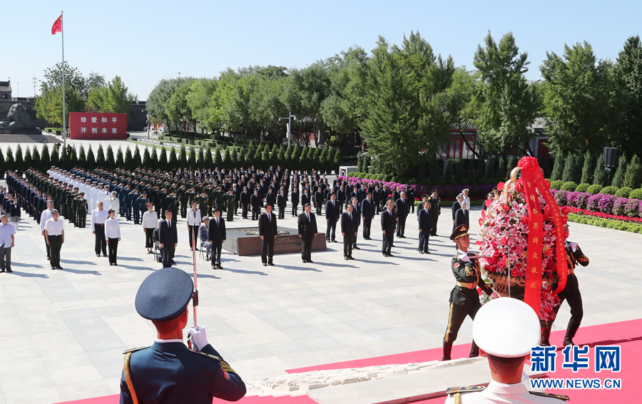 9月3日上午,習(xí)近平、李克強(qiáng)、栗戰(zhàn)書、汪洋、王滬寧、趙樂際、韓正、王岐山等黨和國家領(lǐng)導(dǎo)人來到中國人民抗日戰(zhàn)爭紀(jì)念館,出席紀(jì)念中國人民抗日戰(zhàn)爭暨世界反法西斯戰(zhàn)爭勝利75周年向抗戰(zhàn)烈士敬獻(xiàn)花籃儀式。 新華社記者 丁海濤 攝