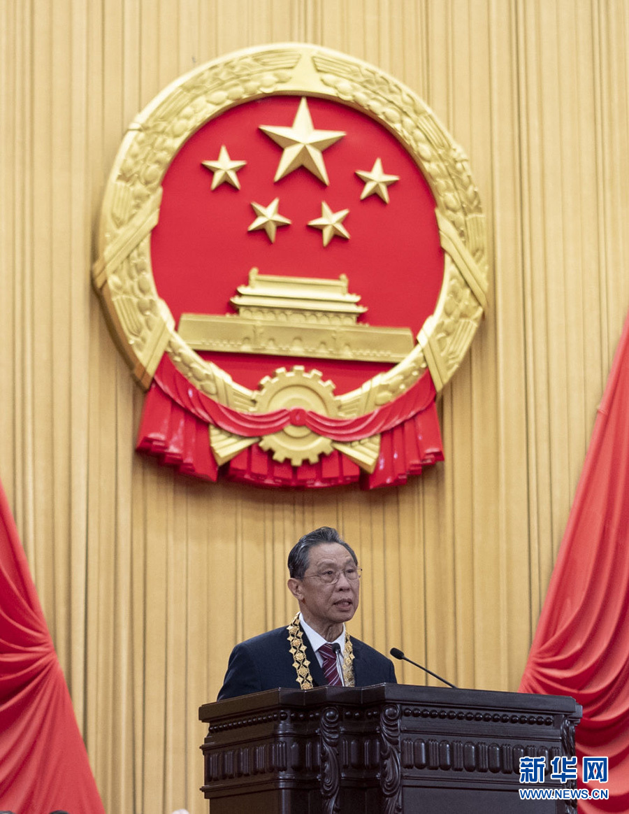 9月8日上午,全國抗擊新冠肺炎疫情表彰大會上,“共和國勛章”獲得者鐘南山發(fā)言。新華社記者 謝環(huán)馳 攝