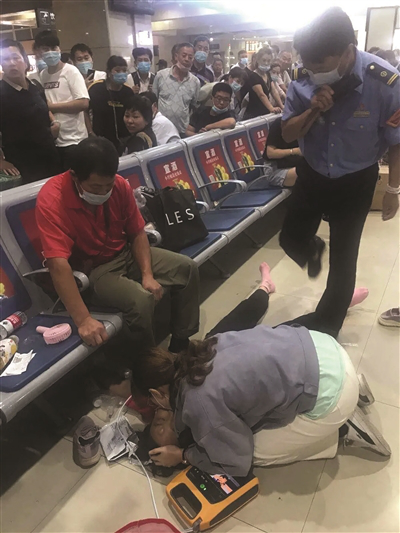 今年4月30日南京苜蓿園地鐵站附近一家健身館內(nèi)一名女子出現(xiàn)心臟驟停,健身館教練、地鐵站值班站長、值班警員等接連對女子進(jìn)行心肺復(fù)蘇,并使用苜蓿園地鐵站設(shè)置的AED對女子進(jìn)行電除顫實現(xiàn)成功救人。地鐵工作人員告訴記者,公司組織過相應(yīng)的AED操作,當(dāng)時他通過監(jiān)控看到有人拿AED,就跟了過去,發(fā)現(xiàn)有人疑似心臟驟停,就迅速參與了急救的過程。