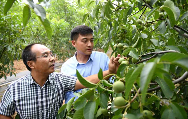 干部查看核桃長(zhǎng)勢(shì) 李一博 攝