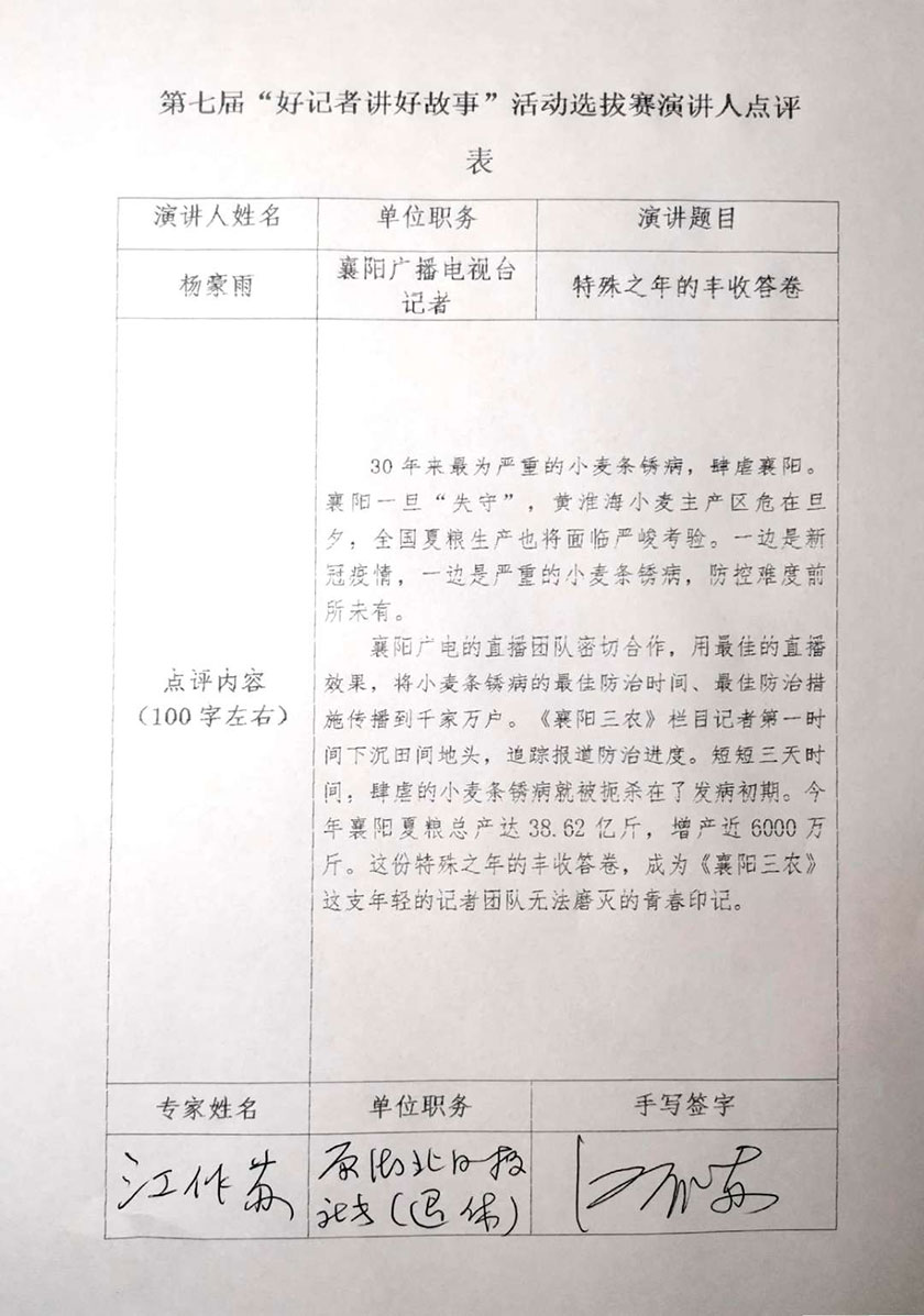 江作蘇點(diǎn)評楊豪雨《特殊之年的豐收答卷》