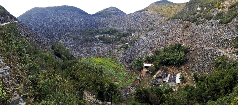 西疇縣是全省乃至全國石漠化最嚴(yán)重的地區(qū)之一,99.9%的面積屬于山區(qū),石漠化面積占75.4%,生存發(fā)展環(huán)境極為惡劣。圖為1991年被石漠化包圍的村莊——西灑鎮(zhèn)么灑村委會大鄔麻村小組。(呂德仁攝)??