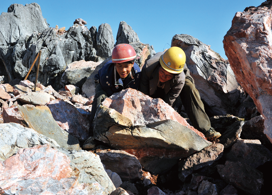 面對惡劣的生存環(huán)境,西疇人民“地瘦要壘埂,人窮要發(fā)狠”,用鏨子一點(diǎn)一點(diǎn)鑿,用大錘一錘一錘敲,用雙手一處一處刨,建成了“保水、保土、保肥”的三保臺地。圖為2010年蚌谷鄉(xiāng)長箐片區(qū)群眾正在實(shí)施土地整治。(呂德仁攝)
