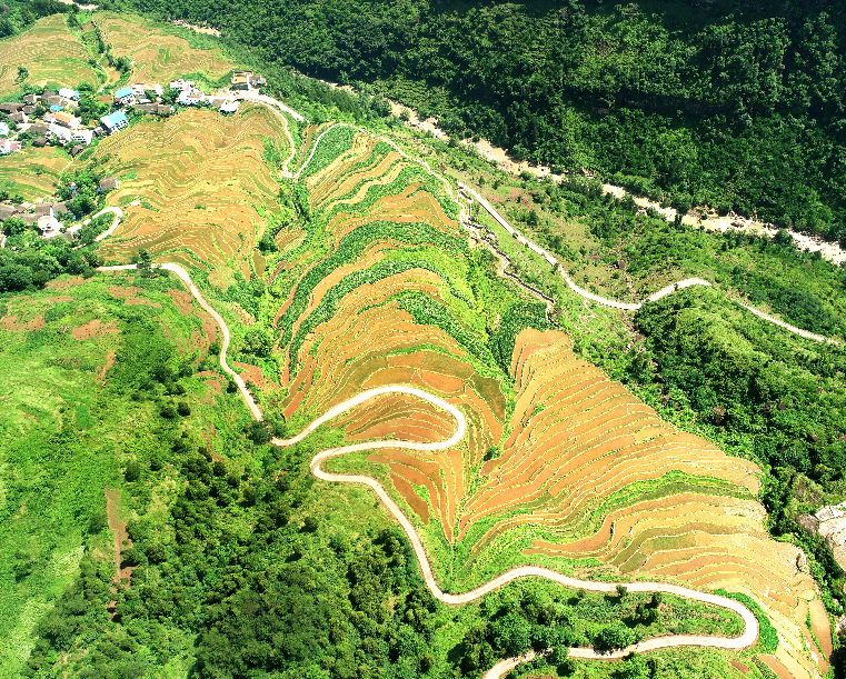 交通運輸條件的有效改善,不斷推動山地特色農業(yè)的快速發(fā)展。圖為重慶市豐都縣龍河鎮(zhèn)杉木巖村3000畝有機大米產業(yè)基地。(林登周 攝)