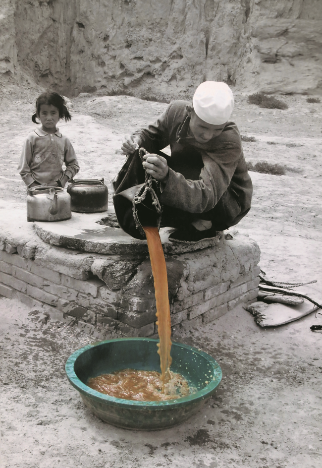 寧夏攝影家王恒德20年前拍攝的田風祥和女兒在水窖中汲水照片是西海固地區(qū)吃水難的真實寫照。(王恒德 攝)