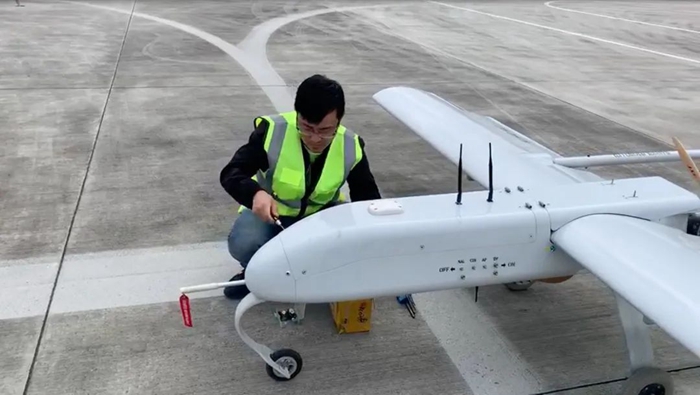 上圖為彭世濤在試飛一架用于測繪、航拍的民用無人機(jī)。