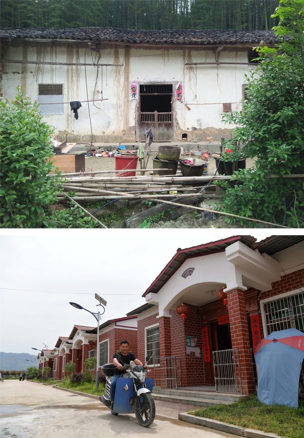 拼版照片的上圖:江西省修水縣黃沙鎮(zhèn)湯橋村村民舊屋(2015年攝,資料照片)。