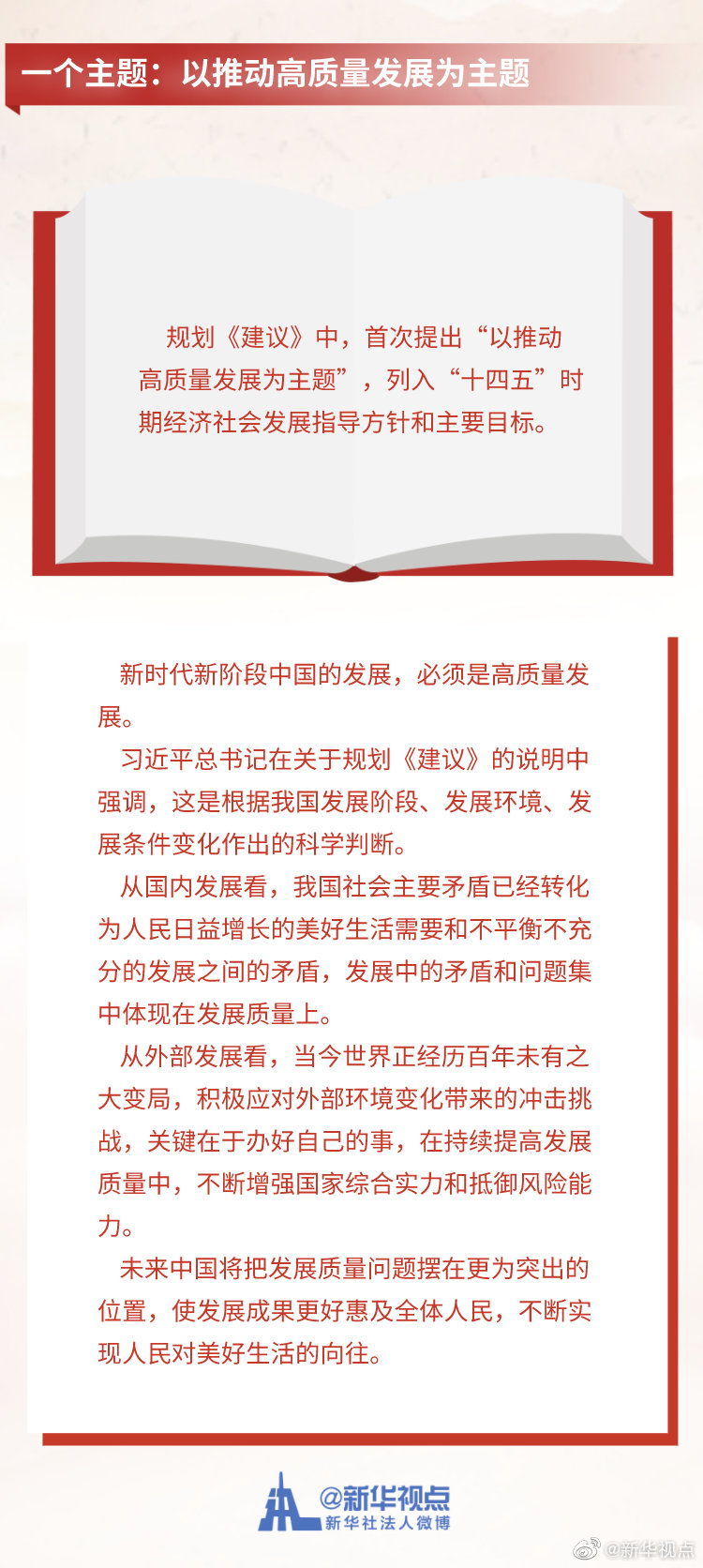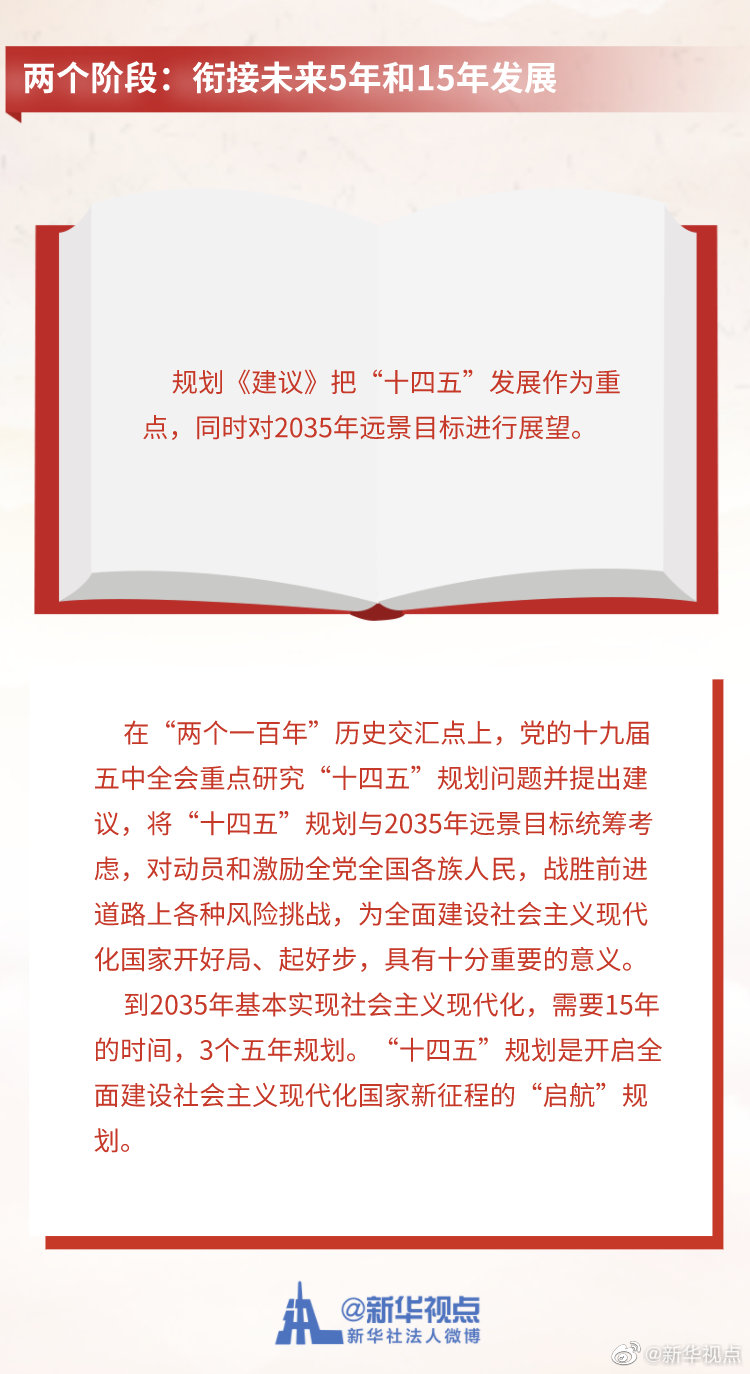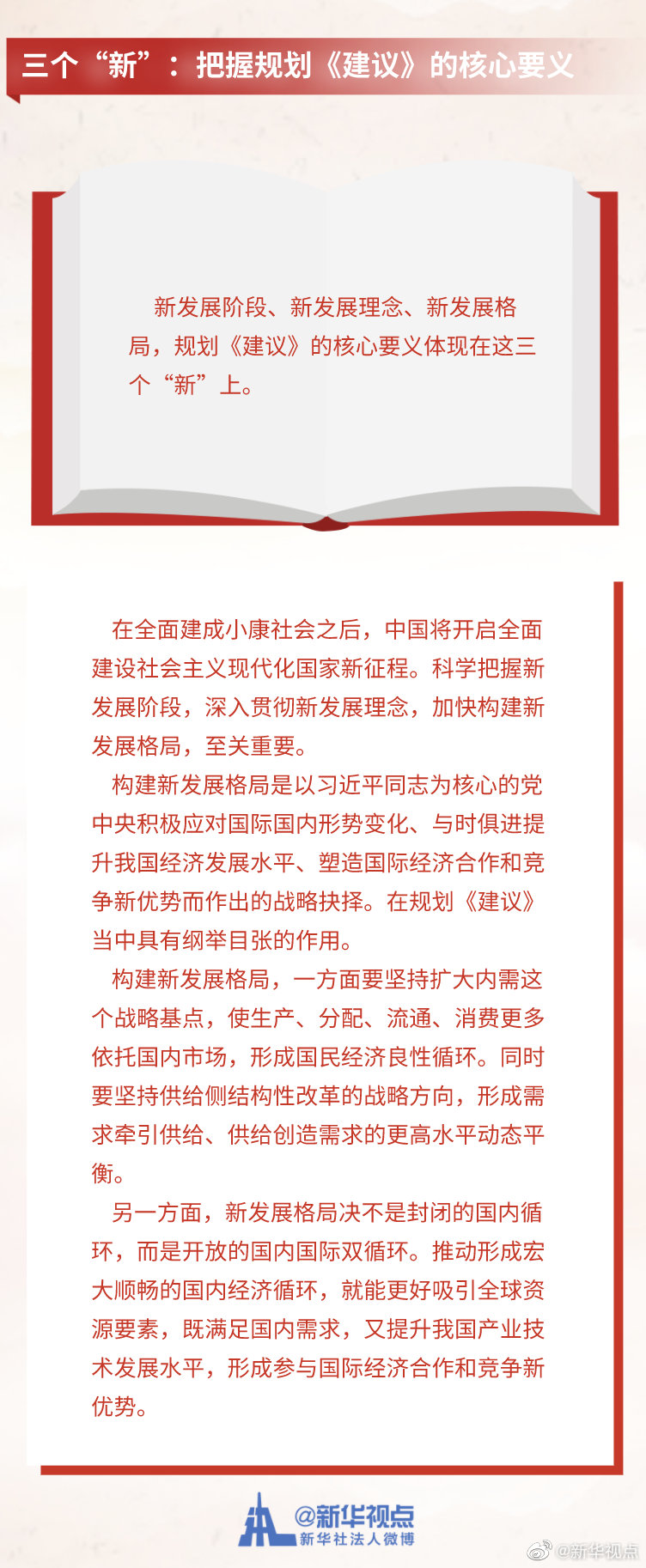 《中共中央關(guān)于制定國民經(jīng)濟(jì)和社會(huì)發(fā)展第十四個(gè)五年規(guī)劃和二〇三五年遠(yuǎn)景目標(biāo)的建議》3日公布。這份長(zhǎng)約2萬字的文件,為未來5年及15年的中國發(fā)展勾勒藍(lán)圖。記者梳理出規(guī)劃《建議》中的“一二三四五”,為觀察中國發(fā)展走向提供一個(gè)獨(dú)特視角。