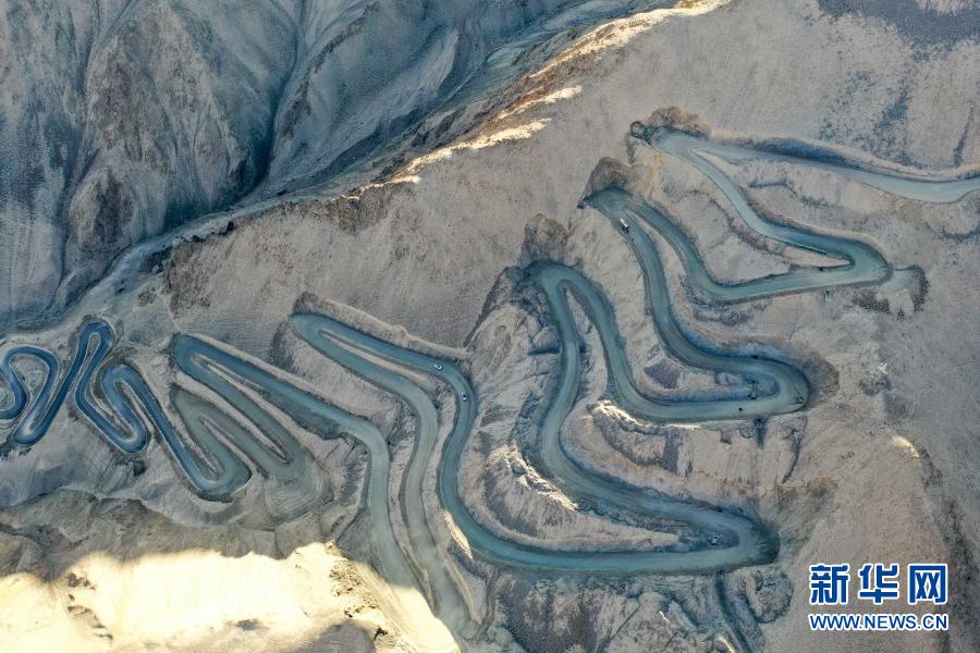 這是新疆塔什庫爾干塔吉克自治縣吾格亞提盤山公路(2019年10月20日攝,無人機照片)。新華社記者 丁磊 攝