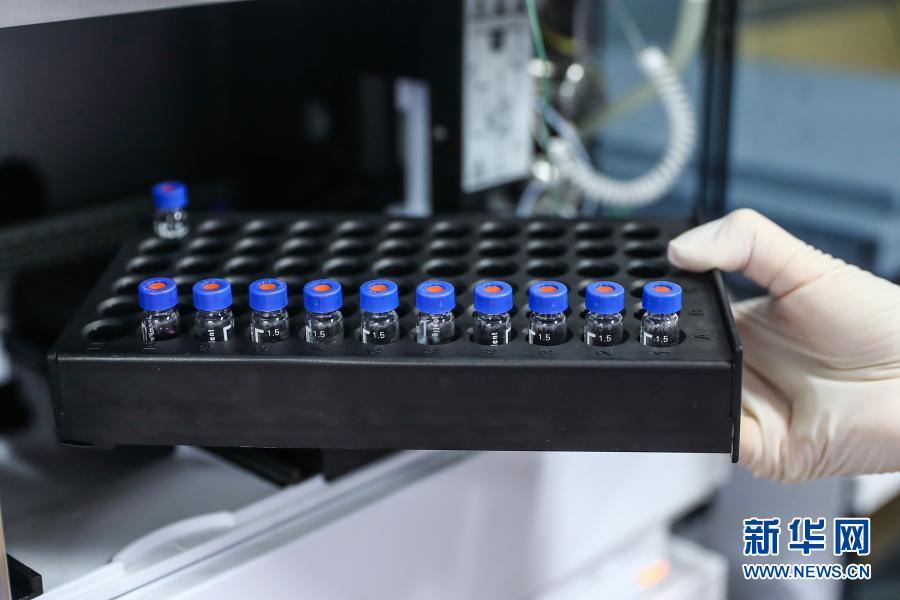 4月11日,工作人員在國藥集團(tuán)中國生物新冠疫苗生產(chǎn)基地質(zhì)量檢定部門對新型冠狀病毒滅活疫苗樣品進(jìn)行雜質(zhì)檢測。新華社記者 張玉薇 攝