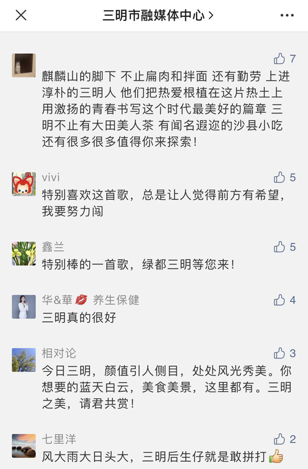 很多福建人看了MV,勾起了對(duì)家鄉(xiāng)的想念、熱愛(ài),以及作為一個(gè)福建人、三明人的自豪感。
