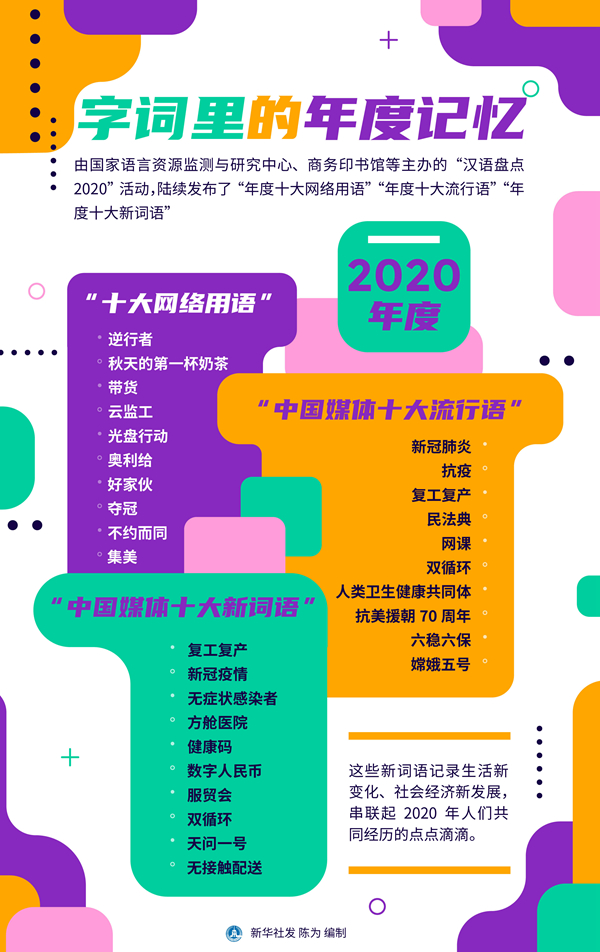 這些新詞語(yǔ)記錄生活新變化、社會(huì)經(jīng)濟(jì)新發(fā)展,串聯(lián)起2020年人們共同經(jīng)歷的點(diǎn)點(diǎn)滴滴。