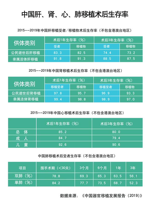 靈丹妙藥難尋就,須得妙手方回春。器官移植因其復(fù)雜程度、風(fēng)險(xiǎn)之大,被譽(yù)為臨床醫(yī)學(xué)技術(shù)“王冠上的明珠”。黃潔夫介紹,5年來,中國器官移植術(shù)后生存率居國際前列。其中,公民逝世后器官捐獻(xiàn)肝移植受者術(shù)后生存率1年達(dá)83.3%,術(shù)后3年達(dá)74.4%;2018年心臟移植術(shù)后1年生存率達(dá)90.8%,高于國際心肺移植學(xué)會(huì)公布的85.4%;逝世后器官捐獻(xiàn)腎移植受者術(shù)后3年生存率為96.9%;2019年中國共完成9例兒童肺移植,創(chuàng)國內(nèi)年齡最小的兒童肺移植記錄(不包括港、澳、臺(tái)地區(qū))。