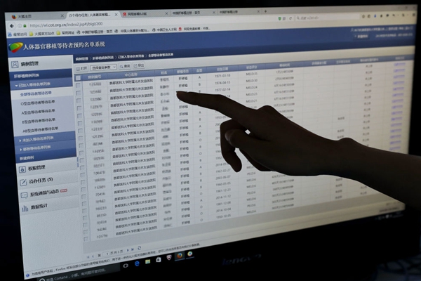 ▲ 在首都醫(yī)科大學(xué)附屬北京友誼醫(yī)院,一臺(tái)電腦顯示“中國人體器官分配與共享計(jì)算機(jī)系統(tǒng)”(COTRS)中的人體器官移植等待者預(yù)約名單。新華社記者 沈伯韓攝