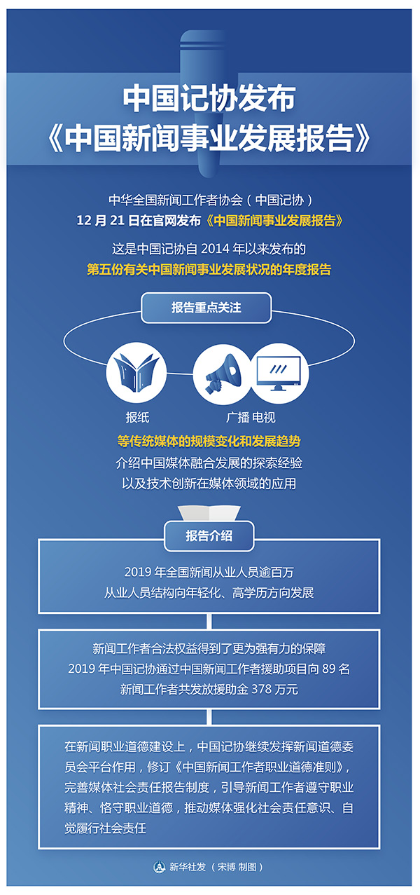 新華社北京12月21日電 中華全國新聞工作者協會(中國記協)21日在官網發(fā)布《中國新聞事業(yè)發(fā)展報告》。這是中國記協自2014年以來發(fā)布的第五份有關中國新聞事業(yè)發(fā)展狀況的年度報告。