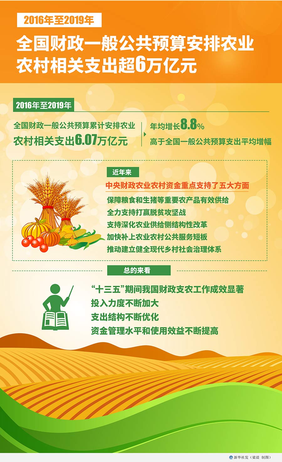 他表示,近年來(lái),中央財(cái)政農(nóng)業(yè)農(nóng)村資金重點(diǎn)支持了五大方面:保障糧食和生豬等重要農(nóng)產(chǎn)品有效供給;全力支持打贏脫貧攻堅(jiān)戰(zhàn);支持深化農(nóng)業(yè)供給側(cè)結(jié)構(gòu)性改革;加快補(bǔ)上農(nóng)業(yè)農(nóng)村公共服務(wù)短板;推動(dòng)建立健全現(xiàn)代鄉(xiāng)村社會(huì)治理體系??偟膩?lái)看,“十三五”期間我國(guó)財(cái)政支農(nóng)工作成效顯著,投入力度不斷加大,支出結(jié)構(gòu)不斷優(yōu)化,資金管理水平和使用效益不斷提高。
