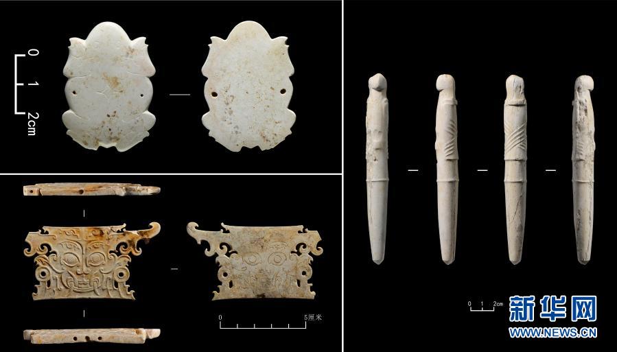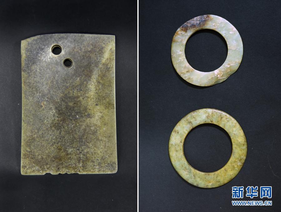 山東滕州崗上遺址出土的玉器(拼版照片)。新華社發(fā)(國(guó)家文物局供圖)