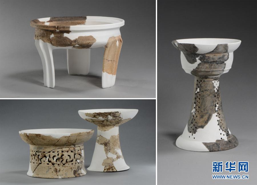 湖南華容七星墩遺址出土的肖家屋脊文化陶器(拼版照片)。新華社發(fā)(國(guó)家文物局供圖)