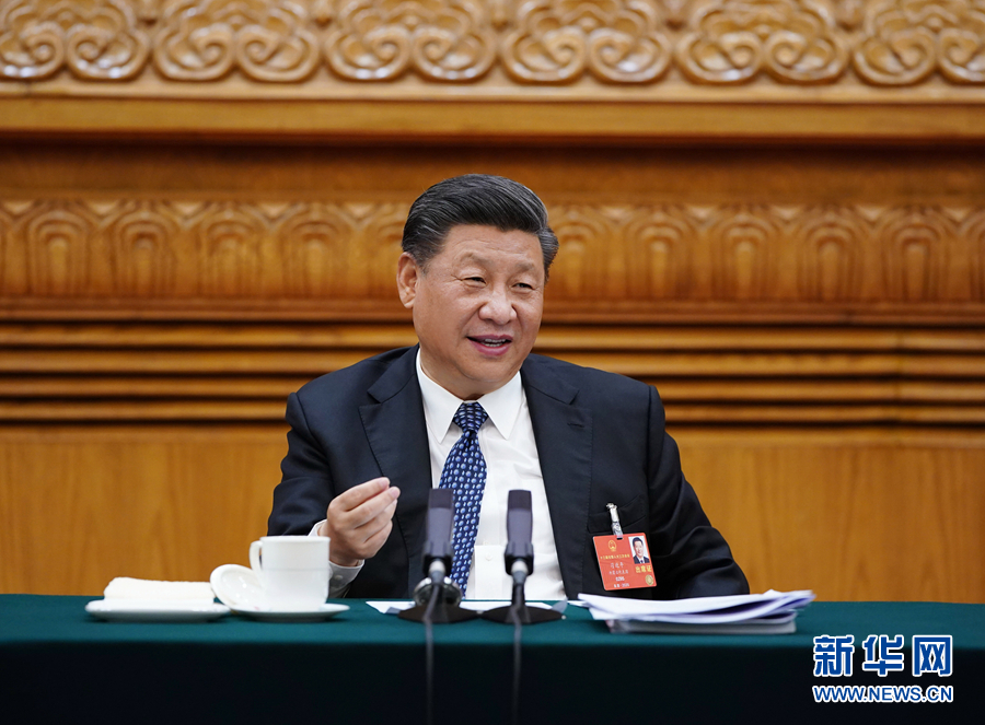 5月24日,中共中央總書記、國家主席、中央軍委主席習近平參加十三屆全國人大三次會議湖北代表團的審議。 新華社記者 黃敬文 攝