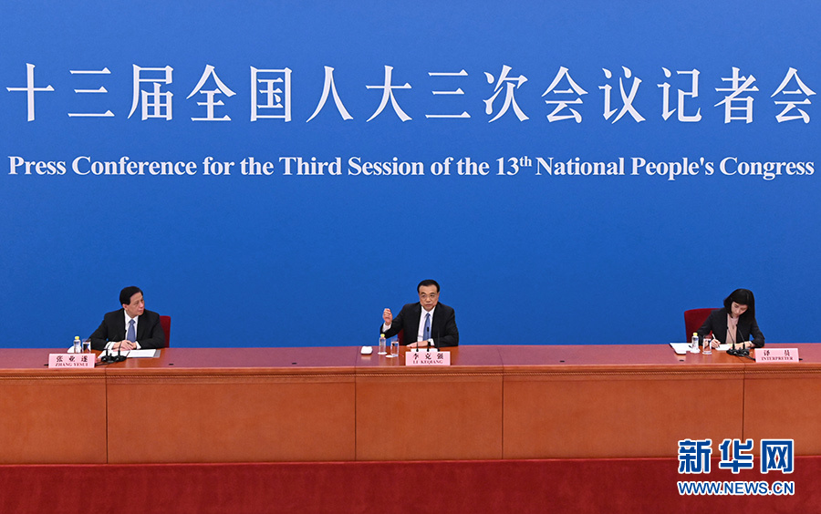 5月28日下午,十三屆全國人大三次會議在北京人民大會堂舉行記者會,國務院總理李克強應大會發(fā)言人張業(yè)遂的邀請出席記者會,并回答中外記者提問。 新華社記者 陳曄華 攝