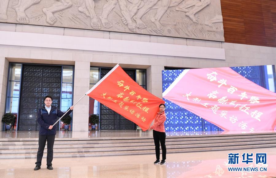 1月18日,在北京國(guó)家博物館,記者代表展示“奮斗百年路 啟航新征程”大型主題采訪活動(dòng)旗幟。新華社記者 申宏 攝