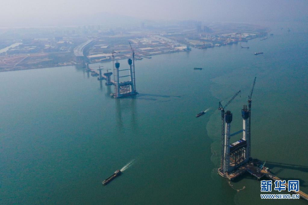 距此正北38公里,內(nèi)伶仃洋里,連接珠江兩岸的又一超級(jí)跨海工程建設(shè)正如火如荼——深中通道初具規(guī)模。在中山市珠江西岸的馬鞍島旁,一排巨大橋墩延伸向水天一色處,遠(yuǎn)處伶仃洋大橋主塔已施工至210米高程,中山大橋主塔已施工至150米高程……