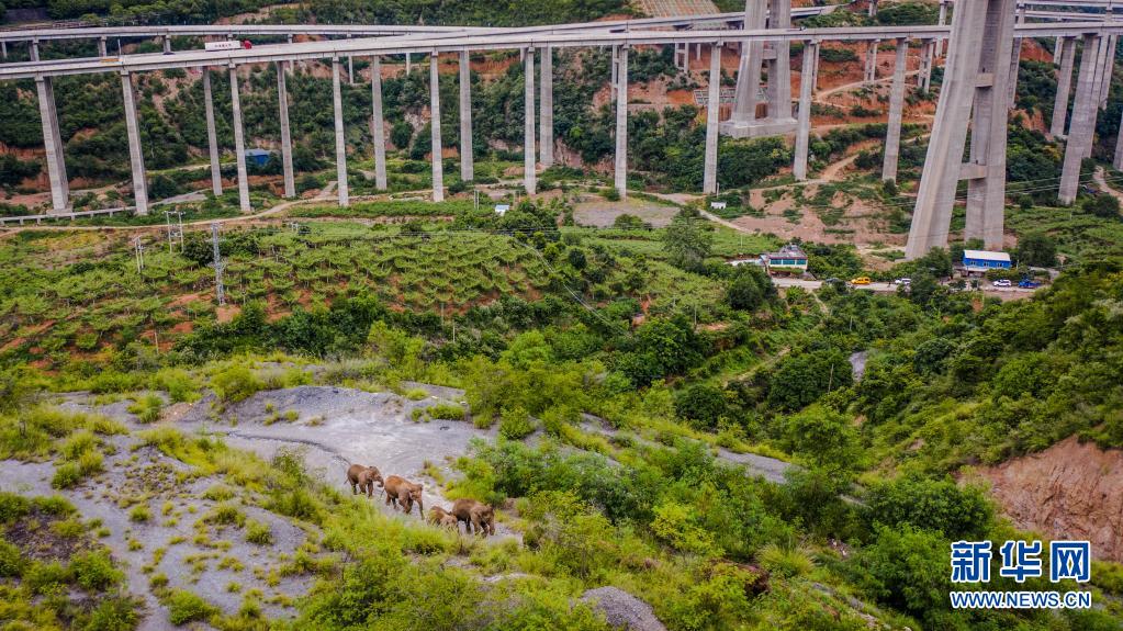 8月9日,象群在云南省玉溪市元江縣境內(nèi)的一處高速路橋下短暫停留。新華社記者 江文耀 攝