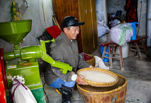 老伴也拗不过他。如今家里种着三亩五分田,比起高峰时的十多亩,他觉得轻松了不少。提到田里的事,“米王”站起身:“走,去田里看看!”