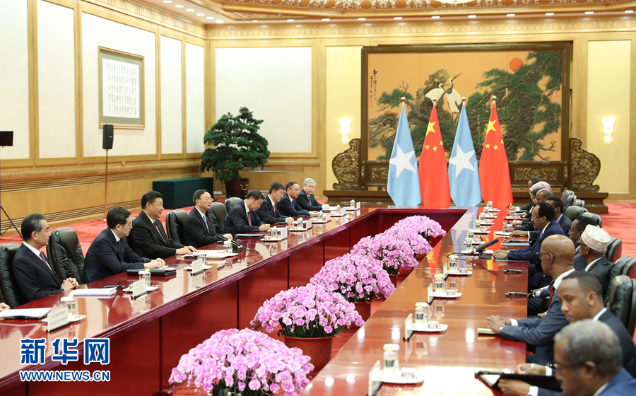 8月31日,國家主席習(xí)近平在北京人民大會(huì)堂會(huì)見索馬里總統(tǒng)穆罕默德。 新華社記者 丁林 攝