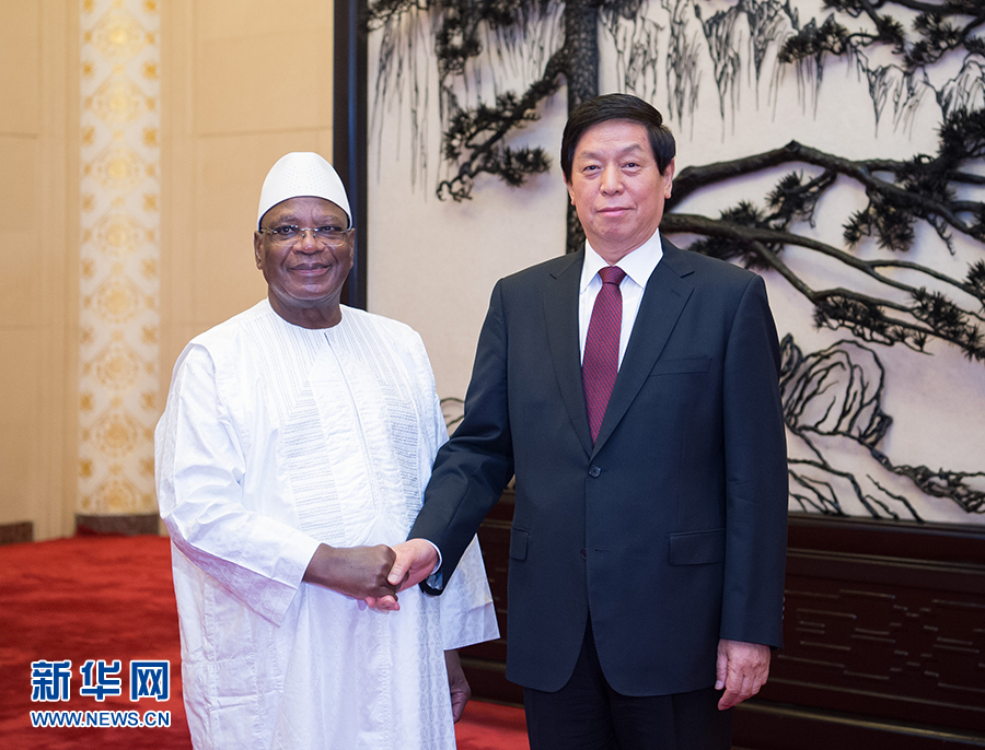 8月31日,全國(guó)人大常委會(huì)委員長(zhǎng)栗戰(zhàn)書(shū)在北京人民大會(huì)堂會(huì)見(jiàn)馬里總統(tǒng)凱塔。 新華社記者 翟健嵐 攝