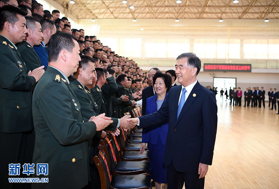 在慰問寧夏軍區(qū)和駐寧部隊(duì)官兵代表時(shí),汪洋指出,寧夏是具有光榮革命傳統(tǒng)的紅色土地,各族兒女在這里拱衛(wèi)陜甘寧邊區(qū),留下了許多可歌可泣的感人故事。寧夏軍區(qū)建立69年特別是自治區(qū)成立60年來,一茬接一茬官兵用熱血和汗水守衛(wèi)、澆灌、建設(shè)這片熱土,作出了不可磨滅的貢獻(xiàn)。你們付出的艱辛努力,取得的光輝業(yè)績,黨和政府不會(huì)忘記,人民不會(huì)忘記。
