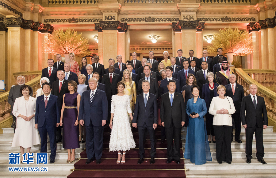 當(dāng)?shù)貢r間11月30日,二十國集團(tuán)領(lǐng)導(dǎo)人第十三次峰會在阿根廷布宜諾斯艾利斯舉行。當(dāng)晚,國家主席習(xí)近平和夫人彭麗媛同出席峰會的各代表團(tuán)團(tuán)長夫婦集體合影。新華社記者 李學(xué)仁 攝
