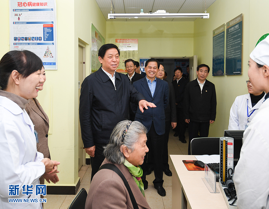 11月28日至12月1日,中共中央政治局常委、全國人大常委會委員長栗戰(zhàn)書在云南就制定基本醫(yī)療衛(wèi)生與健康促進法開展立法調(diào)研。這是11月29日,栗戰(zhàn)書在昆明市西山區(qū)前衛(wèi)社區(qū)衛(wèi)生服務中心,與醫(yī)務人員和就診患者親切交談。 新華社記者 申宏 攝