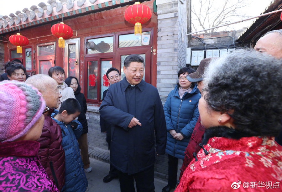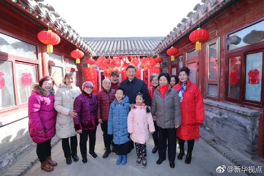 2月1日上午,習近平來到前門東區(qū),沿草廠四條胡同步行察看街巷風貌,聽取區(qū)域規(guī)劃建設、舊城保護整治、人居環(huán)境改善等情況介紹,先后走進兩個四合院看望,同這里的居民一起包餃子、炸饹馇、貼“福”字、聊家常,仔細詢問住房環(huán)境有沒有改善、年貨備齊沒有、生活還有什么困難,祝他們生活幸福、新春快樂。四合院里笑語歡聲,習近平對他們說,中國共產(chǎn)黨的追求就是讓老百姓生活越來越好。(記者張曉松、鞠鵬)