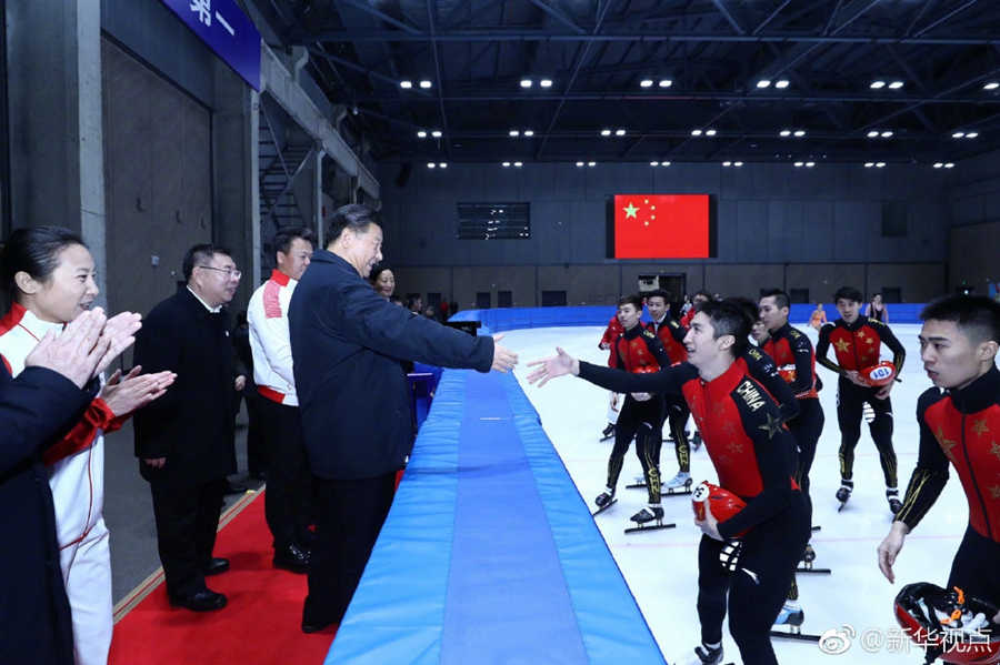 在位于北京石景山首鋼園區(qū)的國家冬季運動訓(xùn)練中心,習(xí)近平先后走進速滑館和冰壺館,看望慰問備戰(zhàn)的運動員、教練員?!坝?xùn)練強度大不大?”“從事這項運動多長時間啦?”“生活上有哪些困難?”“國際上哪些競爭對手最強?”總書記問得仔細(xì)。得知運動員們充滿信心,總書記十分欣慰。他勉勵大家說,舉辦北京冬奧會、冬殘奧會,中國冰雪運動將會上一個大臺階。這是百年不遇的歷史機遇,會應(yīng)運而生一批高水平優(yōu)秀運動員。習(xí)近平強調(diào),體育強則國家強,國家強則體育強。通過北京冬奧會把我國冬季冰雪運動發(fā)展起來,這就是我們的希望。(記者張曉松、鞠鵬、謝環(huán)馳、劉彬)?