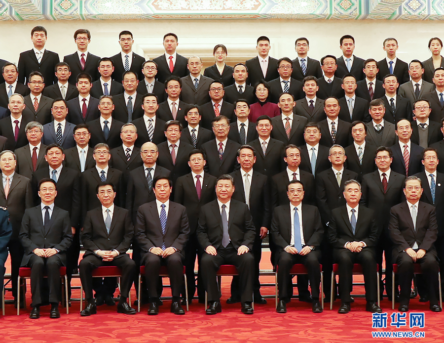 2月20日,黨和國家領(lǐng)導(dǎo)人習(xí)近平、李克強、栗戰(zhàn)書、汪洋、王滬寧、趙樂際、韓正等在北京人民大會堂會見探月工程嫦娥四號任務(wù)參研參試人員代表。 新華社記者鞠鵬攝