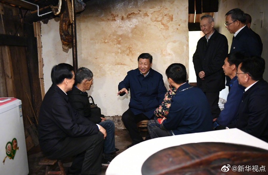 15日下午,正在重慶市調研的習近平總書記來到石柱土家族自治縣中益鄉(xiāng)華溪村貧困戶譚登周家。譚登周老兩口去年因病因傷返貧,在幫扶政策下逐步擺脫貧困,基本生活有保障??倳浲麄円黄鹚闫鹆耸杖胭~和醫(yī)療賬:“低保補助有多少?”“土地流轉一年收入多少?”“醫(yī)藥費花了多少?報銷了多少?”“子女一年給的贍養(yǎng)費有多少?”習近平問得十分仔細。他說,你們家不愁吃、不愁穿這“兩不愁”我們直接看到了,醫(yī)療保障、住房安全做得也挺好。黨的政策對老百姓好,才是真正的好。(文字:張曉松 攝影:王曄、謝環(huán)馳、劉彬)