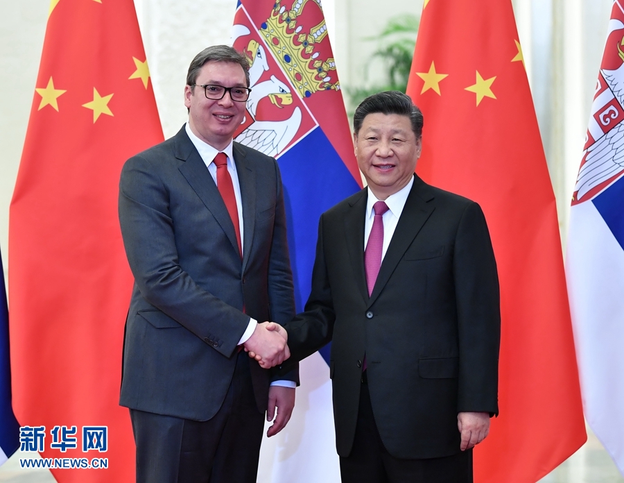 4月25日,國家主席習(xí)近平在北京人民大會堂會見塞爾維亞總統(tǒng)武契奇。 新華社記者 劉衛(wèi)兵 攝