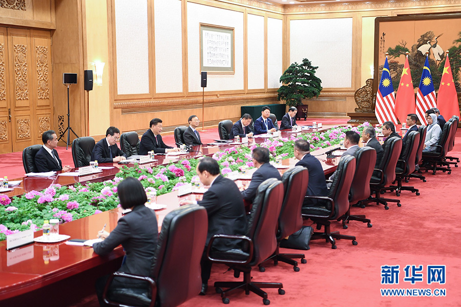 習(xí)近平指出,中國和馬來西亞建交45年,一半時(shí)間在馬哈蒂爾先生總理任內(nèi),你對中馬關(guān)系發(fā)展作出了重要貢獻(xiàn)。當(dāng)前,兩國關(guān)系站在了新的歷史起點(diǎn)上。我們要以共建“一帶一路”為機(jī)遇,為中馬關(guān)系開創(chuàng)美好未來。雙方要堅(jiān)持中馬友好,相互尊重和信任;照顧彼此重大關(guān)切,相互理解和支持。共建“一帶一路”可以推動中國全方位開放,這為世界各國、特別是周邊國家?guī)砀髾C(jī)遇。中馬共建“一帶一路”基礎(chǔ)扎實(shí),前景可期,雙方要加強(qiáng)規(guī)劃,做大合作平臺,推進(jìn)高質(zhì)量合作,要把“兩國雙園”做大做強(qiáng),使其成為“陸海新通道”重要節(jié)點(diǎn),促進(jìn)兩國和地區(qū)聯(lián)通和發(fā)展。總理先生崇尚“亞洲價(jià)值觀”,倡導(dǎo)發(fā)展中國家團(tuán)結(jié)合作,在當(dāng)前形勢下有重要現(xiàn)實(shí)意義。雙方要加強(qiáng)多邊協(xié)作,推動中國-東盟合作提質(zhì)升級。中方支持馬方明年當(dāng)好亞太經(jīng)合組織會議東道主,推動區(qū)域經(jīng)濟(jì)一體化和經(jīng)濟(jì)全球化,推動構(gòu)建開放型世界經(jīng)濟(jì)。