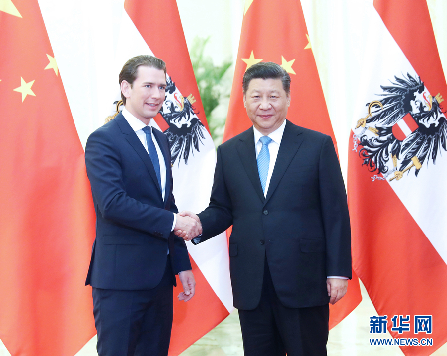 4月29日,國家主席習(xí)近平在北京人民大會(huì)堂會(huì)見奧地利總理庫爾茨。 新華社記者 劉衛(wèi)兵 攝