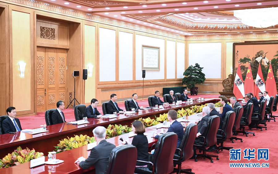 習(xí)近平指出,中方高度重視發(fā)展中奧關(guān)系。兩國友好戰(zhàn)略伙伴關(guān)系不斷得到充實(shí)。中奧合作潛力巨大,前景廣闊。雙方要堅(jiān)持平等相待、相互尊重,不斷將雙邊關(guān)系推向新高度。要為加強(qiáng)兩國人文交流搭建更多平臺(tái),促進(jìn)兩國民心相通。中方歡迎奧方積極參與共建“一帶一路”和“16+1合作”,贊賞奧方對(duì)中國投資展現(xiàn)的開放姿態(tài),歡迎奧地利企業(yè)抓住中國新一輪擴(kuò)大開放帶來的機(jī)遇。
