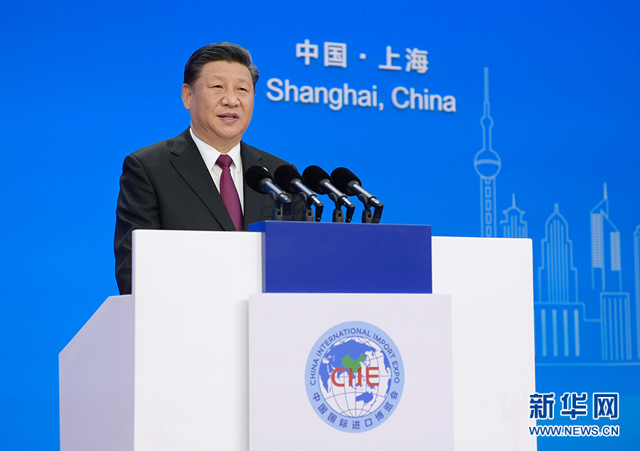 2018年11月5日,習(xí)近平在上海出席首屆中國(guó)國(guó)際進(jìn)口博覽會(huì)開(kāi)幕式并發(fā)表題為《共建創(chuàng)新包容的開(kāi)放型世界經(jīng)濟(jì)》的主旨演講。新華社記者 李學(xué)仁 攝