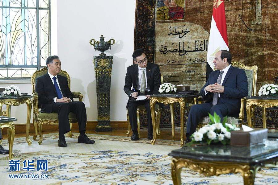 會見塞西時,汪洋轉達了習近平主席的親切問候和良好祝愿。汪洋說,在兩國元首共同引領下,中埃關系實現(xiàn)了歷史性發(fā)展。中方愿與埃方密切高層交往,深化政治互信,積極推進“一帶一路”框架下的務實合作,擴大國際和地區(qū)事務協(xié)調配合,加強反恐領域合作,推動中埃全面戰(zhàn)略伙伴關系取得更大發(fā)展。剛剛閉幕的中共十九屆四中全會為我們推進國家治理體系和治理能力現(xiàn)代化、實現(xiàn)民族復興構筑了可靠的制度大廈,為人類制度文明貢獻了中國智慧和中國方案。中方愿與埃方加強治國理政經(jīng)驗交流,支持埃方走符合本國國情的發(fā)展道路。